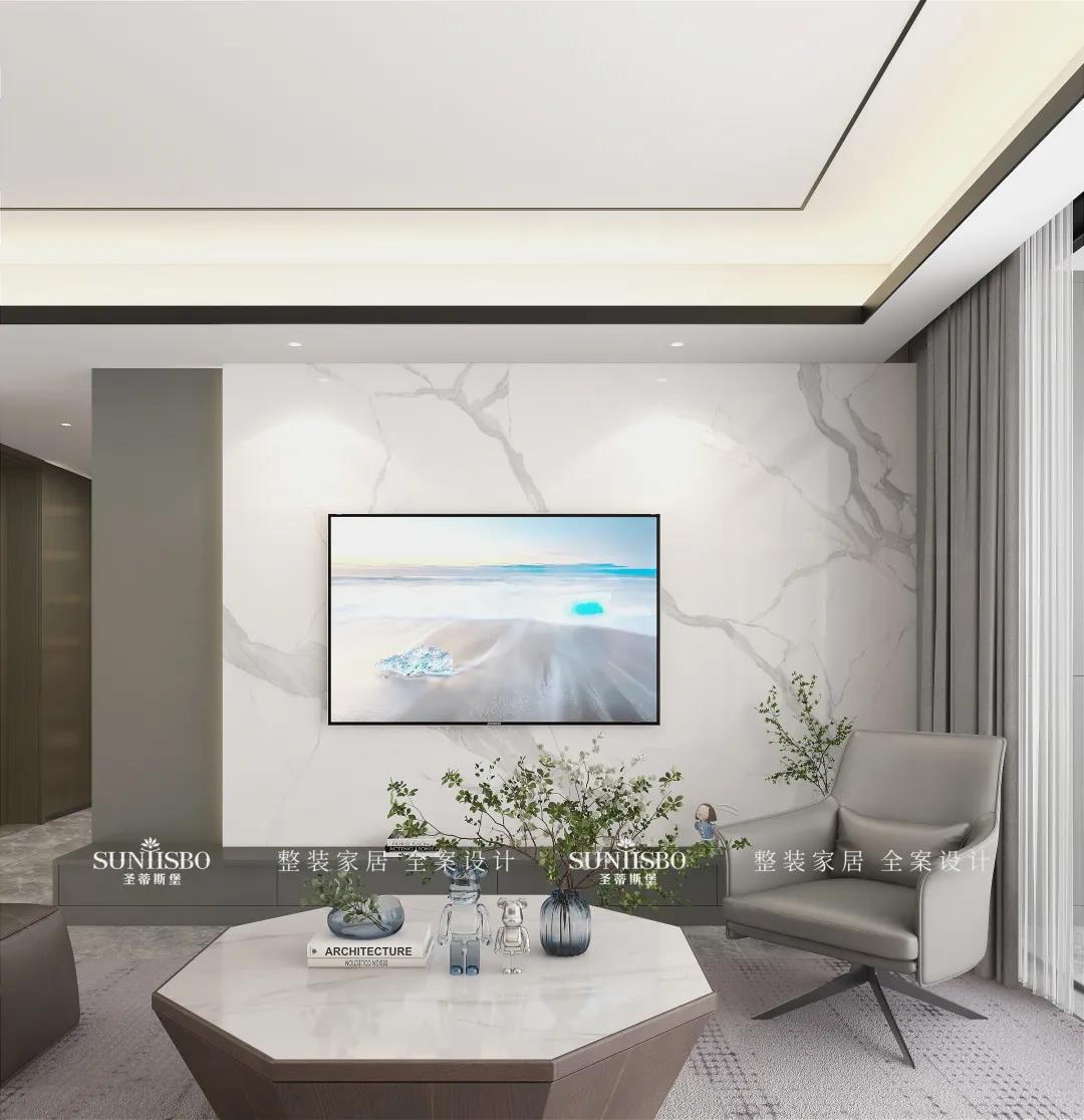 客厅根据业主太太的喜好而设计,茶几采用纯天然爵士白大理石,自然天成的石材纹理,通过留白的艺术表现手法,营造出自然灵动、沉稳时尚的意境。从细节处彰显对生活的态度与追求,打造高品位的现代家居。